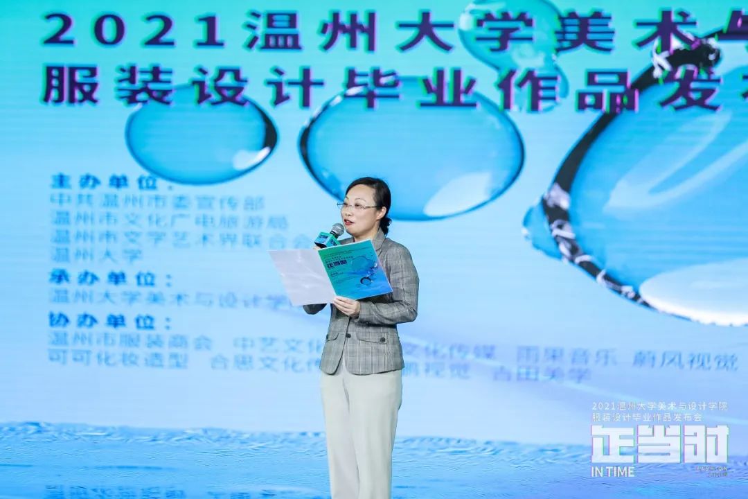 随后,温州市委宣传部副部长叶艳致辞。叶艳指出,永利yl23411官网入口一年一度的服装毕业作品发布会的隆重举行,是校企联动、服务地方的重要成果结晶,希望温大继续承担繁荣社会主义文化艺术的光荣使命和历史责任,深入推进公司产品改革,不断提升高等艺术人才的培养质量。