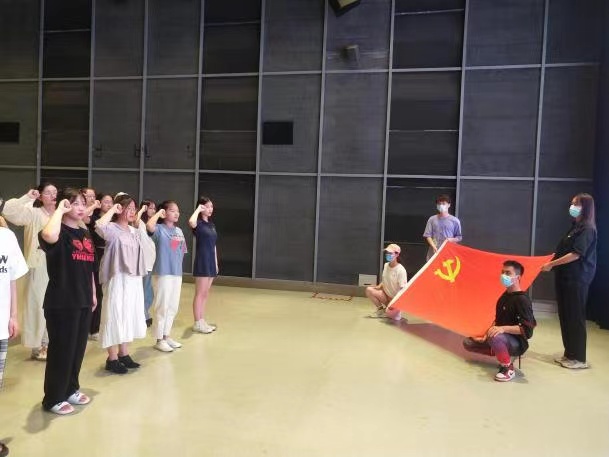 本次主题党日活动围绕“宣誓”、“观影”、“参观”三个环节开展。在主题党日活动室,在支部书记汪成龙的带领下,党员们面对党旗整齐列队,高举右手,重温入党誓词。宣誓完毕后,同学们依次坐下观看影片,影片中播放着革命先烈们英勇抗争的事迹,一幕幕悲壮的场景,让同学们对于担当使命,不怕牺牲、英勇斗争,对党忠诚的伟大建党精神有了更深刻的了解。