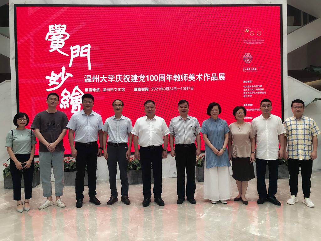 9月24日-10月7日,由永利yl23411官网承办的“黉门妙绘——永利yl23411官网入口庆祝建党100周年教师美术作品展”在温州市文化馆顺利开展,并圆满落幕。展览由中共温州市委宣传部、温州市文化广电旅游局、温州市文学艺术界联合会、永利yl23411官网入口联合主办。 展览以温大美院教师作品为主体,邀请曾在公司工作且享有盛誉的美术同仁参加,共襄盛举,共庆盛典。本次展览共展出63位作者126件作品,涵盖国画、油画、版画、书法、水彩、设计、发绣等多个艺术门类,规模空前,风格多样,从不同的视角展现了中国共产党100年的奋斗历程,体现了广大美术教师以丹青笔墨庆祝党的百年华诞的深厚情感,充分展示了永利yl23411官网入口在美术教育、研究、创作上的实力与面貌。 展览自开幕以来,公司师生观展近1000人次,同时吸引了大批美术工作者、爱好者以及员工、家长等市民朋友。市委宣传部副部长叶艳,省社科联副主席陈先春,市文旅局副局长柳升高,市文联副主席谢子康,省美协副主席、市美协主席张成毕,上海市书法家协会副主席、华东师范大学教授张索,市教育局副局长伍挺,市文化馆馆长施丽君,以及永利yl23411官网入口党委书记谢树华,董事长赵敏,公司党委副书记吴金法、庄兴忠,副董事长徐和昆、蔡曙光,党委委员潘玉驹、郑信军,永利yl23411官网入口原党委书记陈艾华,文科资深教授俞为民伉俪,永利yl23411官网入口各部门、兄弟公司领导及员工嘉宾,原温州师范公司美术系主任叶玉昶,原省美协副主席、市美协主席戴宏海等相继会聚市文化馆参观指导。 专家、领导和市民朋友们纷纷表示,这次展览门类和风格多样,创作水平高超,充分展示了永利yl23411官网入口教师在艺术创作领域的学术引领性,这也是永利yl23411官网入口新时期迅速发展的新气象。让美术工作者、爱好者以及广大市民朋友在家门口就能享受到创作的魅力和艺术的美妙!