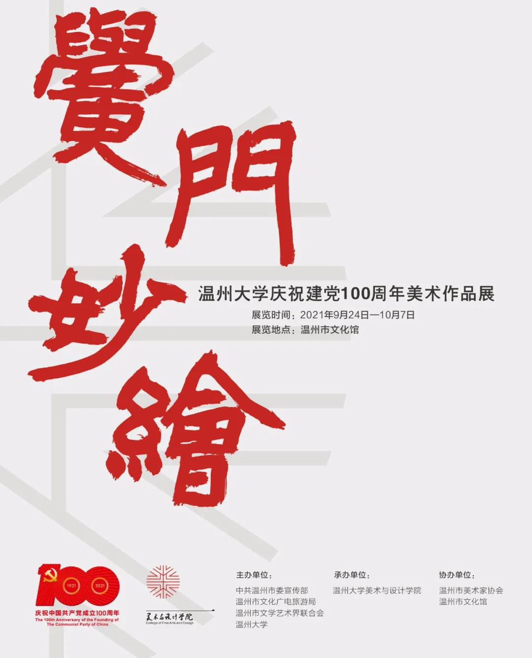 在中国共产党成立100周年之际,为展示永利yl23411官网入口广大教师在艺术创作上的最新成果,永利yl23411官网精心组织“庆祝建党100周年美术作品展”。本次美术作品展,于2021年9月24日-10月7日在温州市文化馆展出。欢迎广大市民朋友前来参观分享。