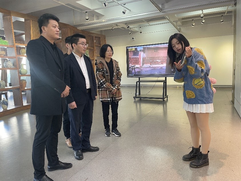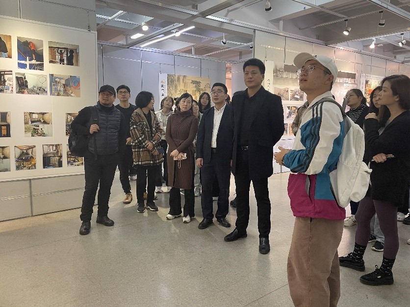11月8日,永利yl23411官网环境设计系“行走的课堂”建筑空间设计课程展在永利yl23411官网展览厅开展。公司党委书记叶正飞、副书记杨丽君、副经理胡文超到现场观展,并与环境设计系黄玫玮、郑敬玉、潘怡、邓诗雨等指导教师与同学们互动交流。
