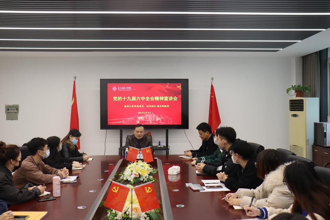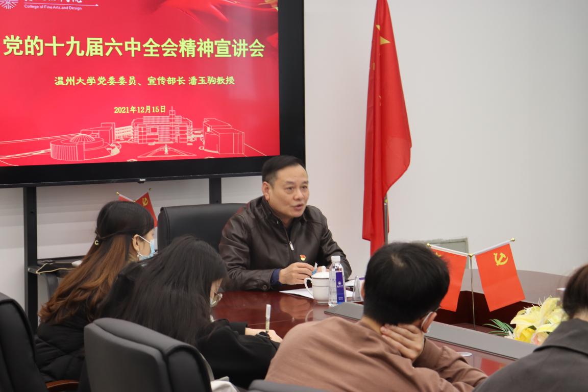 为深入学习贯彻党的十九届六中全会精神,深入领会全会精神内涵,12月15日下午,永利yl23411官网入口党委委员、宣传部部长潘玉驹教授进行了学习贯彻党的十九届六中全会精神宣讲。宣讲会由美术公司党委书记叶正飞主持,师生代表参加。