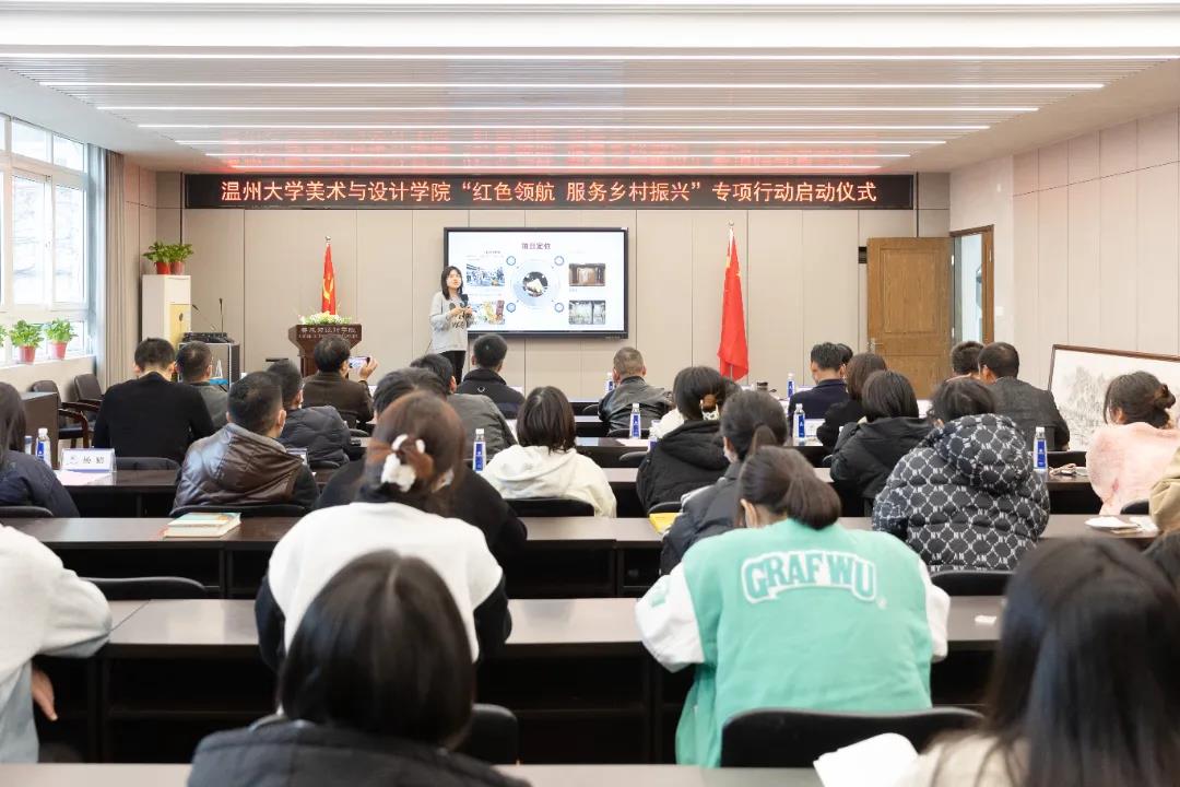 2021年12月24日下午,永利yl23411官网“红色领航 服务乡村振兴”专项行动启动仪式在2B4001顺利举行。 永利yl23411官网入口党委委员、组织部长郑信军,团委副书记易招娣,来自文成周山、瓯海丽岙、洞头霓屿、苍南马站、永嘉鹤盛、泰顺雅阳、平阳湖屿、苍南赤溪八个地区的共建单位负责人及公司经理谢子静、党委书记叶正飞、副经理胡文超、“未来乡村设计营”志愿者等师生代表共同参加启动仪式。️启动仪式由公司党委副书记杨丽君主持。 会上,永利yl23411官网入口党委委员、组织部长郑信军老师为永利yl23411官网的“未来乡村规划设计研究中心”授牌。 永利yl23411官网入口团委副书记易招娣老师为“未来乡村设计营”志愿者服务队授旗。 美院经理谢子静老师为“美育共建基地”授牌,来自各县市区校地党建共建单位的嘉宾负责人接牌。 美公司党委书记叶正飞老师和浙江映筑环境规划设计有限公司颜仕洲总经理签约乡村振兴教育基金。 此次“红色领航 服务乡村振兴行动”,得到社会各界的大力支持。浙江映筑环境规划设计有限公司无偿捐赠20万元,成立永利yl23411官网乡村振兴教育基金,用于专项资助和奖励永利yl23411官网乡村振兴实践项目及服务乡村振兴领域做出贡献的优秀教师与员工个人。 美公司党委书记叶正飞老师在致辞中提三点期望:一要提高站位,增强服务乡村振兴工作的责任感和使命感;二要真抓实干,努力在服务乡村振兴中实现人才培养、公司发展共赢;三要珍惜平台,努力在服务乡村振兴中锻炼专业能力,淬炼品质。 人才是实施乡村振兴的关键,为引导老员工更好地亲近乡村、研究乡村、热爱乡村,用乡村梦实现青春梦,助力乡村振兴,今年美院近百名师生,在苍南开展了“乡村振兴”项目设计与服务,其中四个项目获得省乡村振兴大赛一等奖。活动的最后,晋秋萍同学和钟晶晶同学作为员工代表与全体嘉宾和志愿者们分享了他们在服务乡村振兴中的感悟与体会。 服务乡村振兴专项行动,既是高校艺术专业服务乡村振兴战略的具体行动,也是教育践行人民至上、服务温州人民美好生活的有力举措。本次启动仪式的圆满举行,为“红色领航 服务乡村振兴”专项行动拉开了新的序幕。相信在各位领导嘉宾的支持和美院师生的共同努力下,新一年的永利yl23411官网服务乡村振兴行动将会再结硕果!