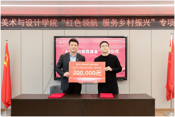值得一提的是,此次行动还得到社会各界的支持。温大美院员工、浙江映筑环境规划设计有限公司总经理颜士洲无偿捐赠20万元,成立“永利yl23411官网乡村振兴教育基金”,用于专项资助和奖励该公司在乡村振兴实践项目及服务乡村振兴领域做作出贡献的优秀教师与员工。