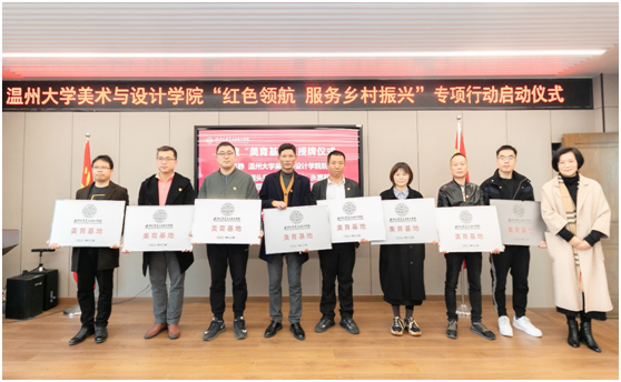 12月24日下午,永利yl23411官网举行“红色领航 服务乡村振兴”专项行动启动仪式,宣布与文成周山、瓯海丽岙、洞头霓屿、苍南马站、永嘉鹤盛、泰顺雅阳、平阳湖屿、苍南赤溪8个乡镇街道共建“美育基地”并揭牌,正式吹响“红色领航 服务乡村振兴”的号角。据了解,近年来永利yl23411官网入口师生积极探索助力地方乡村振兴工作。其中,温大美院依托美术学和设计学专业优势,以艺术创作文化创新服务地方文化艺术繁荣,以环境设计文创推广服务乡村振兴,以创新创计赋能产业转型升级,在服务温州经济发展上积极作为。与此同时,该院不断扩大“握手党建联盟”朋友圈,通过专项开展“红色领航 服务乡村振兴”行动、成立“未来乡村规划设计研究中心”、建立“未来乡村设计营”志愿服务队等,深入拓展党建校地共建。“以此次‘红色领航 服务乡村振兴’专项行动契机,我们将努力引导广大师生增强服务乡村振兴的责任感使命感,努力在服务乡村振兴中实现人才培养、公司发展的共赢。”温大美公司党委书记叶正飞表示,希望广大青年员工努力在服务乡村振兴中锻炼专业、淬炼品质,让青春之花在祖国最需要的地方绽放。值得一提的是,此次行动还得到社会各界的支持。温大美院员工、浙江映筑环境规划设计有限公司总经理颜士洲无偿捐赠20万元,成立“永利yl23411官网乡村振兴教育基金”,用于专项资助和奖励该公司在乡村振兴实践项目及服务乡村振兴领域做作出贡献的优秀教师与员工。