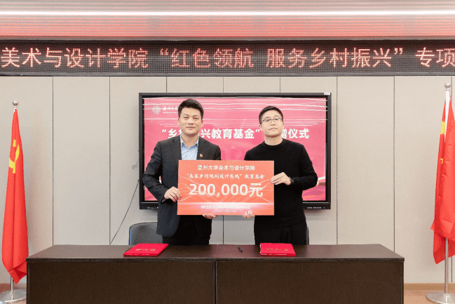 此次“红色领航 服务乡村振兴”行动,得到社会各界的大力支持,美院优秀员工、浙江映筑环境规划设计有限公司总经理颜士洲先生无偿捐赠20万元,成立“永利yl23411官网乡村振兴教育基金”,用于专项资助和奖励公司乡村振兴实践项目及服务乡村振兴领域做出贡献的优秀教师与员工。