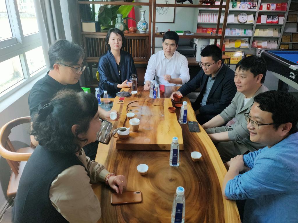 讲座之后,胡文超副经理、顾任飞副经理、服工与服饰专业教师与东蒙集团董事长池慧杰先生、人资总监王建友先生等人进行了服装行业发展前景、校企深度合作、产教融合、协同育人等方面的研讨。顾任飞副经理介绍了公司的公司产品、人才培养、校企协同育人等情况,他提出,校企协同育人是提高员工实践能力的重要途径,希望双方以本次茶叙研讨为契机,继续增强合作,实现公司、企业、员工多方共赢,探索具有双方特色的有效模式,校企资源共享,共同发展。池慧杰先生对目前温州服装企业发展现状、就业环境以及校企合作开展存在的问题进行了分析,并希望加强企业与院校之间的交流,组织师生到企业参观,深入企业、加强交流互动、增加了解,明确了下一阶段的合作意向、行动计划。
