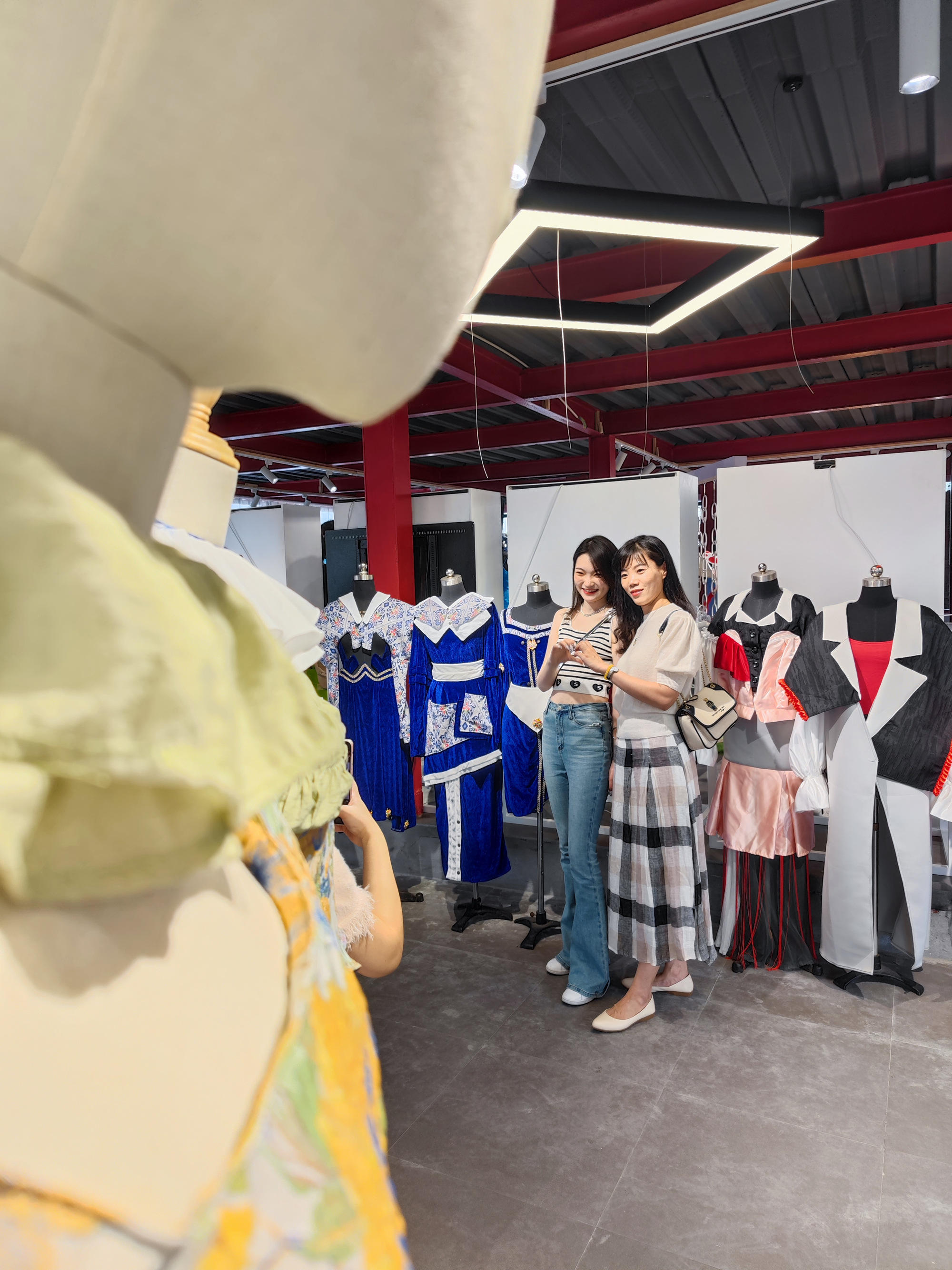 不少来参展的市民都在积极拍照,在丰富多彩的服饰之间摆出各种造型。一位来山根音乐艺术小村游玩的李女士说:“我是带孩子来山根玩,无意间发现今天这里有永利yl23411官网毕业作品展,很惊喜,也可以让孩子从小就多接触一些艺术展览,培养审美。”