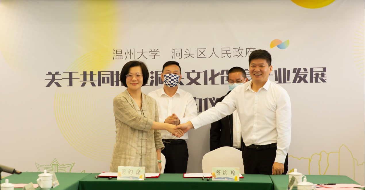 5月26日上午,温州市洞头区人民政府 永利yl23411官网入口关于共同推进洞头文化创意产业发展合作签约仪式在洞头区文创中心顺利举行,永利yl23411官网入口党委委员、副董事长潘玉驹,洞头区人大副主任陈后春、副区长贾约拿、文广旅体局副局长林慷慨、东屏街道相关负责人以及半屏文创中心负责人,永利yl23411官网入口教务处副处长赵燕、永利yl23411官网经理谢子静、党委书记叶正飞、副经理胡文超、视觉传达系主任刘俊、办公室主任张丽出席活动。活动由贾约拿副区长主持。