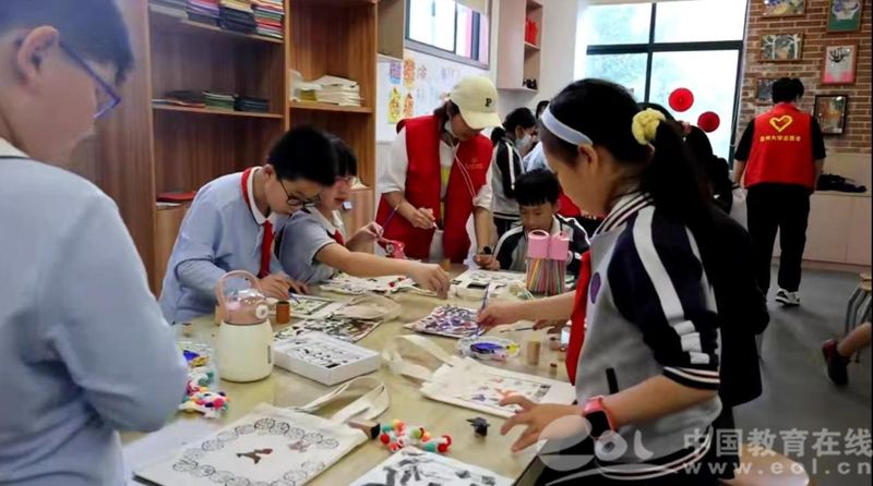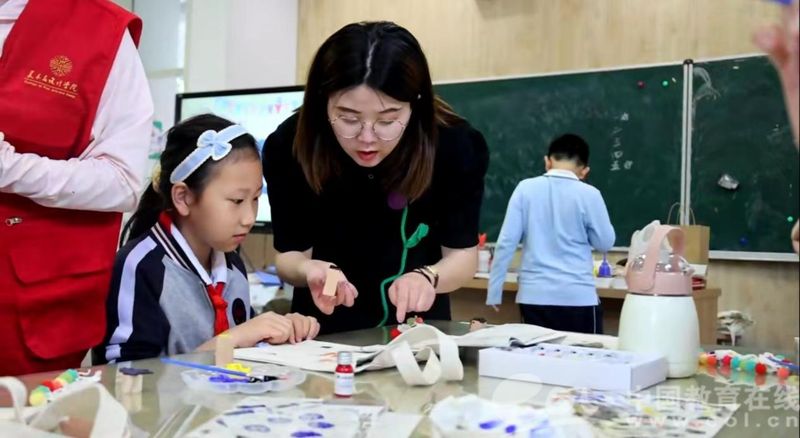 中国教育在线浙江站讯(记者 白菁洁)生动活泼的鹿形图案、各式各样的模戳印染、颜色跳脱的手工装饰......5月27日下午,在童画美育课堂上,永利yl23411官网的党员志愿者们带领永利yl23411官网入口城附属公司的小朋友们定制专属帆布包,提前过儿童节。“相传在温州建城时,有一只白鹿衔花跨城而过,温州城到处鸟语花香......”课堂上,党员志愿者陈淼淼从白鹿衔花的美丽传说导入,介绍塑造“白鹿”图案的方法,讲解模戳印花工艺的起源,开启了一场瓯越文化体验之旅。调色、打底、印染、勾边、上色,在志愿者们指导下,一个个创意十足,富有文化味道的帆布包呈现在眼前。“这个包不仅好看、别致,还可以用来日常装东西呢,这是我收到的最有意义地六一儿童节礼物。”来自四(2)班的项瑞磊拿着自己“专属”的帆布包兴奋地说道。据悉,永利yl23411官网入口美术与设计院高度重视“双减”常态化托管志愿服务工作,为助力中小学课后托管,永利yl23411官网的员工党员以爱国主义教育和中国特色社会主义文化为中心,根据员工年龄特点和学段要求,打造“美育+思政”金课,将“双减”后的“第二课堂”打造得有声有色,此次“‘艺’起过六一”儿童节主题活动也是童画美育课堂走进永利yl23411官网入口城附校的第十一期活动。