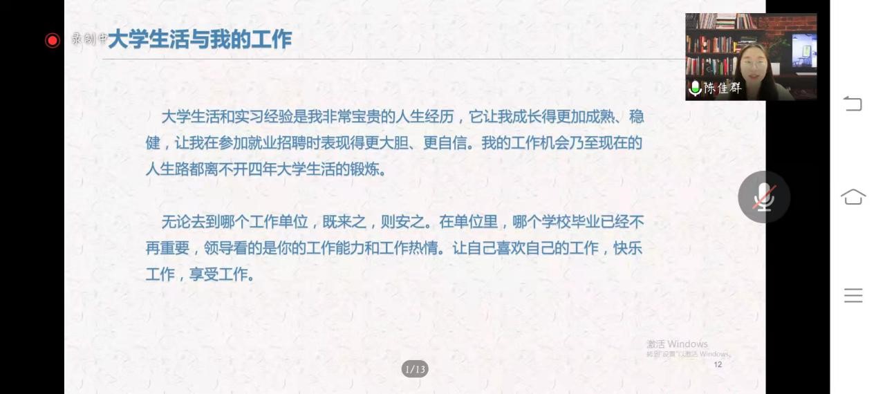 首先是陈佳群学姐分享,她是温大美术学专业2022届毕业生,现已考取台州市黄岩区编制美术教师,她分享的是自己考编的经验。