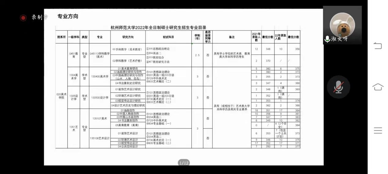 而接下来的张淑颖学姐则分享的是自己的考研经验,张淑颖学姐是杭州师范大学2020级艺术设计在读研究生。