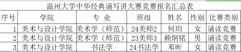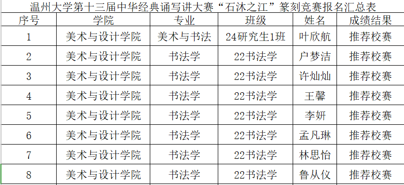 现将公司在此次大赛中,包括汉字书写竞赛、诵读竞赛、篆刻竞赛项目入选校赛的名单予以公布。