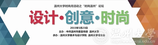 活动主题: 设计·创意·时尚 活动时间:2015年5月23日(周六)下午15:00 活动地点:温州铂尔曼酒店 主要内容:以温大艺术时尚专业多年建设的特性为切入点,结合温州地区时尚产业的蓬勃发展以及文创产业学科的新兴发展,以如何从公司、行业、企业等多维度,共同推动区域文创时尚产业的协调发展,以多元视觉为综合打造温州时尚之都积极献计献策。 热忱欢迎全校师生莅临观摩指导! 永利yl23411官网 2015年5月21日