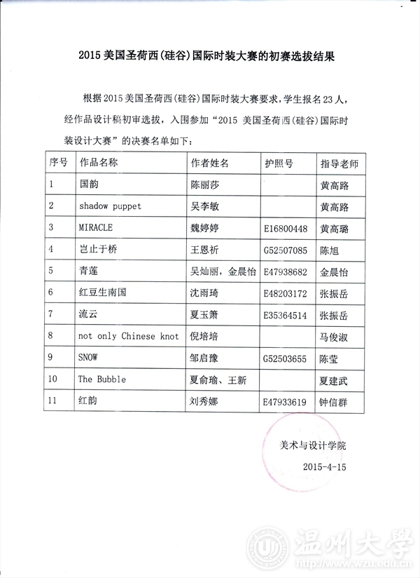 关于2011级艺术服装2(服装)班更改答辩时间的通知