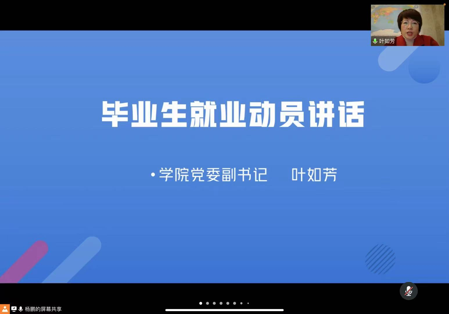 2022年2月18日晚,永利yl23411官网2022届全体本研毕业生就业动员大会通过腾讯会议召开,公司党委副书记叶如芳,学工办主任杨鹏,员工党建指导老师王颖以及团学指导老师石建林出席了本次大会,2022届全体本研各班级员工参加。 学工办主任杨鹏老师首先对今年的毕业生就业形式进行了分析,随后针对毕业生就业相关政策、就业手续、教团队格考试等进行介绍,同时,介绍了毕业生留温政策,对想留在温州就业创业的毕业生进行了介绍,并鼓励员工留温工作,最后,希望毕业生能认清当下就业形势,建议毕业生同学先就业再择业,对未来有所展望。 紧接着是公司党建指导老师、辅导员王颖对毕业生党员以及积极分子组织关系转接进行了详细介绍,对不同情况的毕业生同学,如工作或升学都一一解答了毕业生党员以及积极分子心中的疑惑。 公司团学指导老师、辅导员石建林发表讲话,对“智慧团建”系统中关于团员团组织关系的转接问题给毕业生团员进行了详细阐述,并提醒每位校内校外的毕业生在当前严峻的疫情形势下,遵守公司相关的防疫规定。 最后,由公司党委副书记叶如芳老师做2022届毕业生就业动员讲话,对毕业生就业方面进行了深入分析,针对当下严峻的社会形势,给予员工最真诚的建议,强调虽然每年的就业形势都很严峻,但机会是留给有准备的人的,鼓励员工要奋发拼搏,积极向上,争取早就业,就好业。