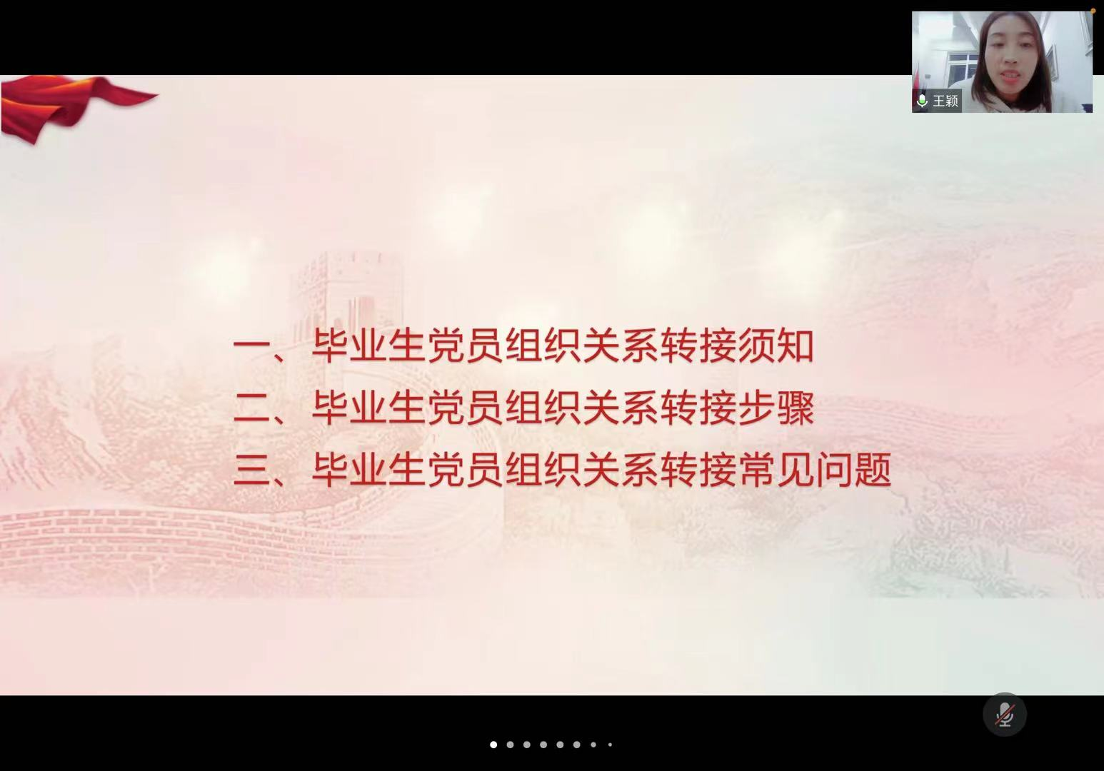 紧接着是公司党建指导老师、辅导员王颖对毕业生党员以及积极分子组织关系转接进行了详细介绍,对不同情况的毕业生同学,如工作或升学都一一解答了毕业生党员以及积极分子心中的疑惑。