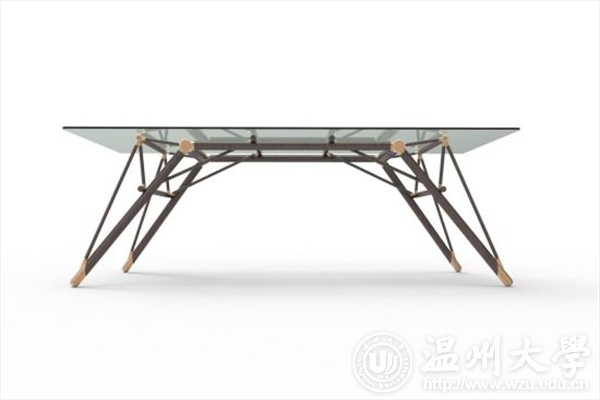 本届比赛的一等奖获得叶智敏,来自永利yl23411官网2013级产品设计专业,他设计的多功能桌有个好听的名字叫做“梦倚廊桥”,他说:“木拱廊桥是中国乃至世界桥梁史上的一种独特创造,根据木拱廊桥底部独特的自支撑结构,选用胡桃木作为主要材料,加上铜制的节点设计,既体现了木拱廊桥独特的结构美又具时尚感。此外在网购物流飞速发展的时代利用小构件形成大跨度的桌子,可以做到拆卸方便,便于运输,拆装时可以做到不损坏构件,减少运输成本。”