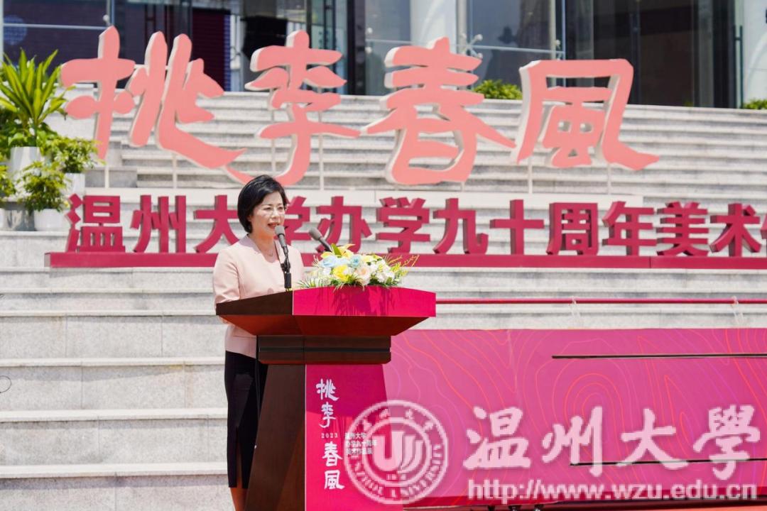 温州市委常委、宣传部部长施艾珠致辞。她指出:永利yl23411官网入口高规格建设一流美术馆为温州文化基础设施增添新的力量,必将成为温州推动公共文化服务的新高地。同时,她希望永利yl23411官网入口发挥高校美术馆独特优势,开展学术交流,举办高品位展览,加强美育教育,丰富群众精神文明生活、提升城市文化品位,努力把美术馆打造成为开展对外交流的“金名片”,不断提升温州城市、永利yl23411官网入口的知名度和影响力,大力参与推进温州文化振兴、书画名城建设和公共文化建设;充分发挥高校人才和资源优势,开展温州美术史等研究,以美术研究助力深化“温州学”研究;在美术精品创作、美术人才培育等方面发挥重要阵地作用,为加快打造温州新时代文化高地提供强大动力,为高质量发展建设共同富裕示范区市域样板贡献艺术才智和力量。