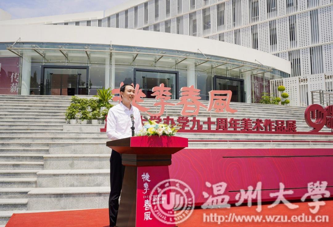 桃李不言,满园芳菲。5月13日,永利yl23411官网入口隆重举行“桃李春风——永利yl23411官网入口办学九十周年美术作品展”开幕式暨永利yl23411官网入口美术馆开馆仪式。浙江省教育厅党组成员、副厅长陈峰,中国美术公司党委书记金一斌,吉林艺术公司党委书记张东航,温州市委常委、宣传部部长施艾珠,永利yl23411官网入口党委书记、温州市委组织部部长张健,永利yl23411官网入口原党委书记谢树华,浙江展览馆馆长汪健,原温州师范公司美术系首任系主任、教授叶玉昶等众多领导嘉宾出席,温州市相关部门负责人、艺术名家、温大员工、师生代表等近300人参加。永利yl23411官网入口董事长赵敏主持活动。