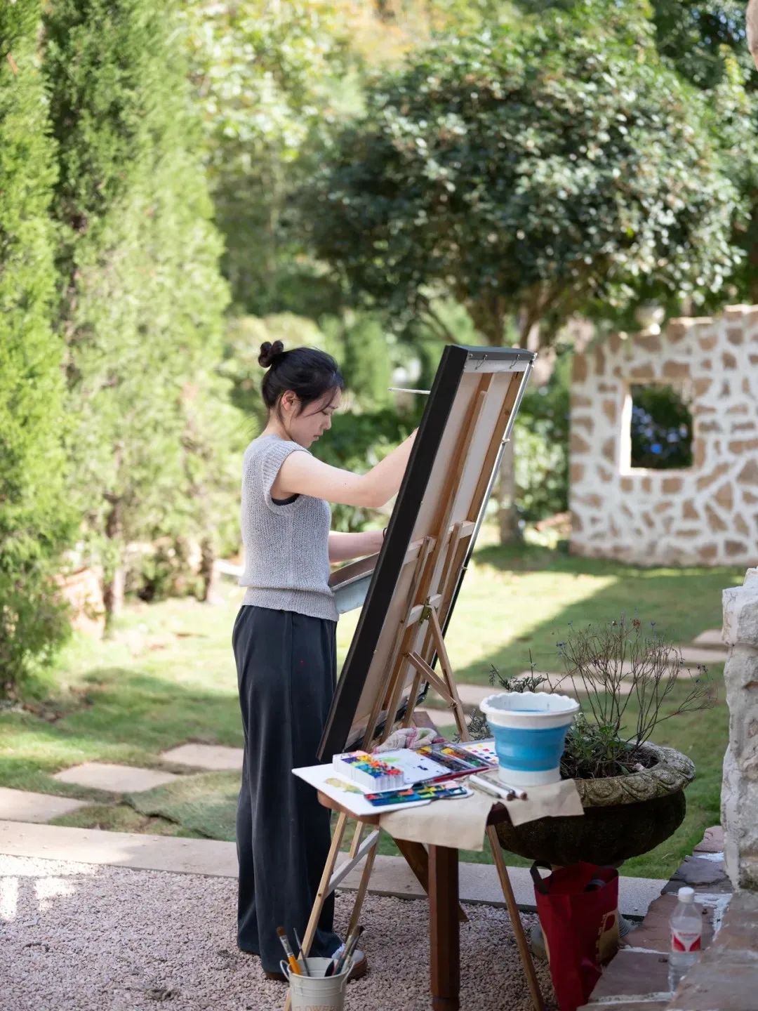 冯奕涵,之前曾担任画室教师,并在网络上承接插画工作。然而,自从她涉足婚礼绘画师这一职业,便深感其与自身特质相契合。她具备迅速的绘画能力,而记录婚礼现场最适宜的画作形式——油画,正是她所擅长的。