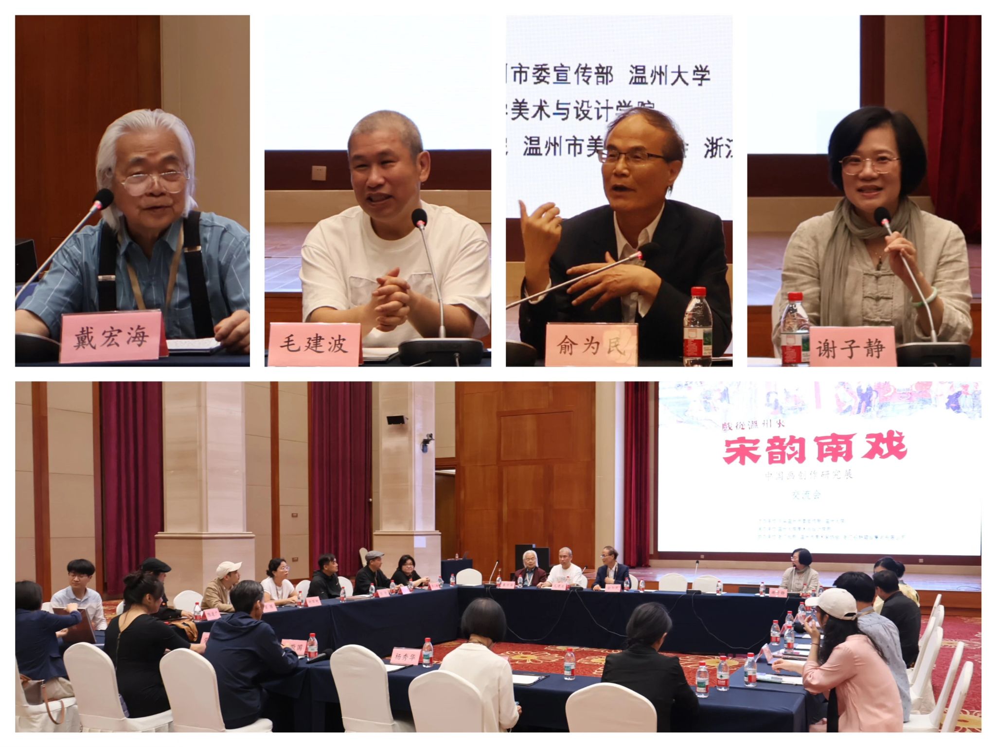 2025年5月10日,由中共温州市委宣传部、永利yl23411官网入口主办,永利yl23411官网承办的“戏从温州来:宋韵南戏——中国画创作研究展”在浙江展览馆隆重启幕。本次展览作为浙江文化艺术发展基金资助项目和温州文化艺术发展基金项目,汇聚了浙江各地70余位艺术家的80余幅作品,近代画家关良先生的20件戏曲画作品,以及温大师生团队创作的系列戏曲文创作品。本次展览分别从传承、演变、发展、转化和回眸等角度,探索了中国画与南戏这一中国戏曲源头的跨艺术形式融合。展览期间,省、市相关部门领导莅临巡馆,对展览在展示、传播等方面取得的成效给予充分肯定,对展览画册等成果高度认可。出席仪式的嘉宾有 浙江省文联书记处原书记张均林,浙江省文联副主席、温州市文联党组书记、主席周新波,永利yl23411官网入口副董事长王尧骏,浙江省文联二级巡视员、省美协副主席骆献跃,浙江省美协秘书长、副主席王敏杰,浙江省文联创研处处长郑斯奇,浙江省政协民宗委办公室主任蓝华,中国古代戏曲研究专家俞为民、孙蓉蓉,国家一级美术师戴宏海,中国美术公司艺术人文公司教授毛建波,浙江大学中国艺术研究所所长池长庆,浙江展览馆馆长汪健,浙江展览馆副馆长林应辉,浙江省画院副经理余宏达,浙江美术馆副馆长黄寿耀,浙江传媒公司动画公司经理陈凌广,浙江省油画院副经理陈子胄,浙江省画院人物画研究所所长罗小珊,浙江省美术馆一级美术师陈纬,西泠印社书画篆刻院教务长李砚,浙江省侨联文协会书画专委会主任林孝爽,浙江省文化馆美术干部鲍海斌,杭州师范大学美术系主任彭德,浙江省传统文化促进会秘书长罗汉,温州市文联副主席王黎然,温州市文联党组成员、副主席吕呈力,永利yl23411官网书记刘青松,温州画家代表徐香莉、全奇石、马成方、吴海清等,杭州画家代表荣黛红、沈春妮、杨秀华、高天宇等,及永利yl23411官网入口师生代表20余人。 永利yl23411官网入口副董事长王尧骏,浙江省文联副主席、温州市文联党组书记、主席周新波,浙江省美术家协会秘书长、副主席王敏杰先后致辞。展览启动仪式由永利yl23411官网经理谢子静主持。 永利yl23411官网入口副董事长王尧骏致辞 王尧骏表示,温州作为中华戏曲“活化石”——南戏的发源地,承载着深厚的文化底蕴。此次展览正是永利yl23411官网入口在文化传承与创新道路上的一次重要实践。永利yl23411官网入口始终重视文化育人,致力于推动中华优秀传统文化的传承与发展。他指出,除了相关的南戏绘画创作,温大师生团队还精心制作了系列戏曲文创作品,丰富了传统文化在新时代传承与创新的形式。“戏从温州来:宋韵南戏——中国画创作研究展”在杭州的展出,也为温州、杭州两地搭建了文化交流平台,从而增进人们对南戏与中国画艺术的了解,不断激发公众对传统文化的热爱。浙江省文联副主席、温州市文联党组书记、主席周新波致辞 周新波在致辞中指出,在“把艺术创造力和中华文化价值融合起来,把中华美学精神和当代审美追求结合起来,激活中华文化生命力”的背景下,“宋韵南戏——中国画创作研究展”这一项目作为浙江文化艺术发展基金资助项目和温州市文化艺术发展基金项目,旨在助力美术教育和美育发展,推动温州乃至浙江地区的文化建设与发展。南戏作为温州的文化符号,通过本次展览将进一步扩大其戏曲故里金名片的影响,并领航推进南戏研究的多方位发展,助力南戏走向更广阔的世界。浙江省美术家协会秘书长、副主席王敏杰致辞 王敏杰表示南戏起源于温州,是中华戏曲的重要源头,其质朴风格与生动表演深受大众喜爱。此次展览将中国画与南戏结合,旨在探索传统艺术的创新表达。中国画重笔墨意境,南戏以表演传情,两者虽形式不同,却在艺术精神上相通,通过这一跨界尝试,展现了传统文化的独特魅力。筹备期间,杭州、温州艺术家深入温州古戏台、博物馆等地调研,以多样形式呈现南戏神韵,力求让观众感受南戏的深厚底蕴与中国画的灵动之美。未来,浙江美术家协会将继续挖掘浙江文化资源,推动艺术创新,为文化繁荣贡献力量。永利yl23411官网经理谢子静主持捐书仪式 随后,项目代表梁腾上台为浙江展览馆捐赠《宋韵南戏——中国画创作研究展作品集》10册,并合影留念。剪彩仪式 最后,与会领导嘉宾上台为展览启动仪式剪彩并合影留念。 启动仪式后,在浙江展览馆三楼会议厅举办“宋韵南戏中国画创作交流会”。俞为民、戴宏海、谢子静、彭德、李砚、罗汉、楼晓勉、罗小珊、鲍海斌、陈凌广、梁腾等专家学者围绕“戏从温州来”彰显文化自信、南戏起源与传播、戏曲与绘画跨界融合、温州精神等议题展开深入讨论,交流会由毛建波主持。交流会嘉宾发言 本次展览以中国画为载体,生动诠释了宋韵南戏的典雅风韵与人文内涵。通过艺术家对戏曲题材的深度挖掘,既还原了传统戏曲的古典之美,又赋予其崭新的艺术表达,展现了传统艺术跨越时空的对话。这种戏曲与绘画的跨界融合,不仅深化了南戏文化的传播维度,更激活了中国画创作的时代活力,在传承与创新的碰撞中,为中华优秀传统文化的当代转化提供了生动范例,让观众在笔墨丹青间感受到传统艺术的永恒魅力与现代生命力。《宋韵南戏与中国艺术的对话》美育课程 5月11日下午,于浙江展览馆序厅举