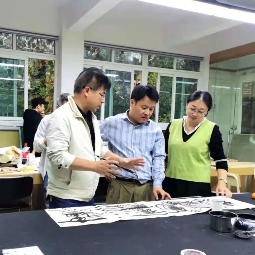2021年10月12日--10月23日,为期12天的浙江省中小学教师继续教育《书法临摹创作与国学修养》培训在永利yl23411官网成功举办。培训课程由永利yl23411官网教授朱国平、楼晓勉等知名教师联合执教,来自温州市各地区中小学64名教师参加了此次学习。 本课程主要从中小学教师书法教学素养需求出发,精心安排教学内容,着力强化技法练习“三部曲”(平衡控制能力+读帖导入+习作转化),带领学员进行楷、行书分解练习及隶书大字专题训练,以转变书法学习观念、技法疏导与能力提升为主旨,并就中小学书法教育课堂经验进行交流,并安排丰富的文史知识系列讲座,内容涉及姓名称谓知识、书面礼仪基本规范、对联的文化礼仪规范、贺寿贺婚书画署款题跋、砚台的文化知识和保养等,努力达到书法创作水平和课堂书法教学能力综合提升的培训目的。学员刻苦认真,晚上也跟进训练,从而取得了很好的效果!学员也纷纷表示收获多多,并期待下次课程能再聚温大美院继往开来。 课堂内容 朱国平教授给学员们上专题讲座,感受书法和国学的魅力。 朱国平和楼晓勉老师带领学员进行楷书、行书的分解练习及隶书大字专题练习,快速提高学员各书体的临摹与创作能力。 马亦钊老师介绍自己与书法如何结缘、如何提升自己对书法的爱好。 陈胜武老师《中国人的姓名称谓文化》《笔尖上的礼仪——书面礼仪概说》 学员学习现场 学员作品欣赏 学员合影留念
