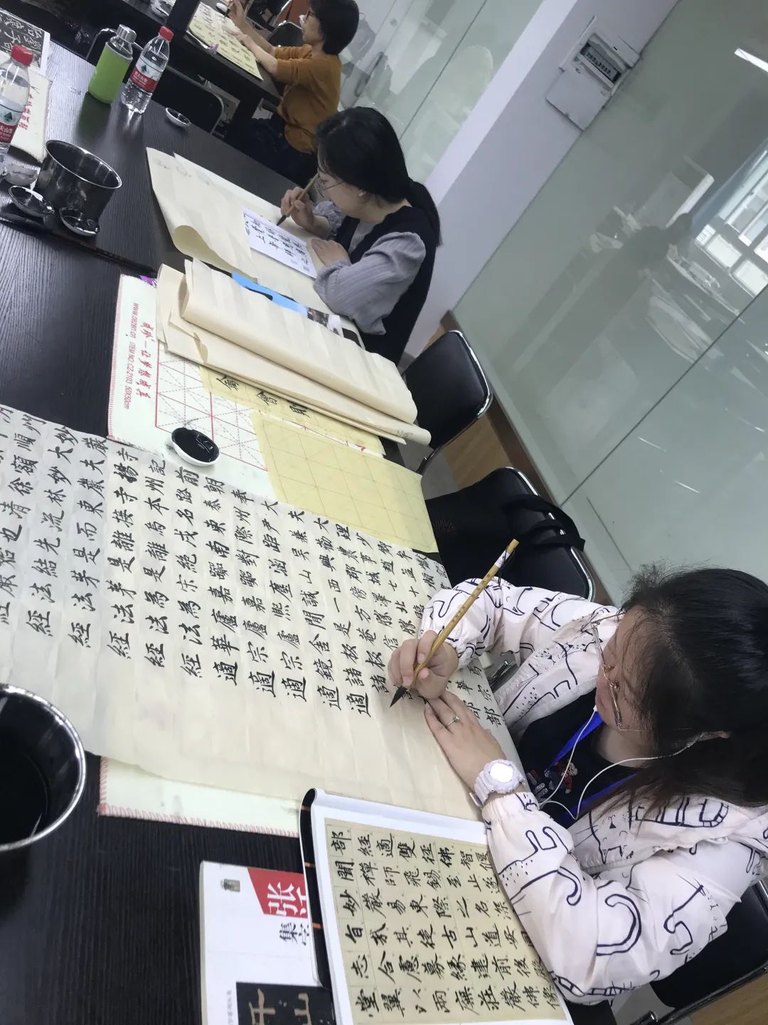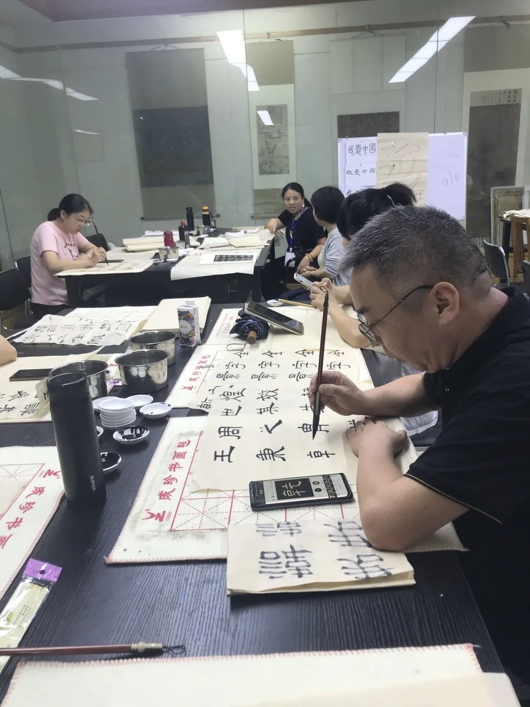 本课程主要从中小学教师书法教学素养需求出发,精心安排教学内容,着力强化技法练习“三部曲”(平衡控制能力+读帖导入+习作转化),带领学员进行楷、行书分解练习及隶书大字专题训练,以转变书法学习观念、技法疏导与能力提升为主旨,并就中小学书法教育课堂经验进行交流,并安排丰富的文史知识系列讲座,内容涉及姓名称谓知识、书面礼仪基本规范、对联的文化礼仪规范、贺寿贺婚书画署款题跋、砚台的文化知识和保养等,努力达到书法创作水平和课堂书法教学能力综合提升的培训目的。学员刻苦认真,晚上也跟进训练,从而取得了很好的效果!学员也纷纷表示收获多多,并期待下次课程能再聚温大美院继往开来。